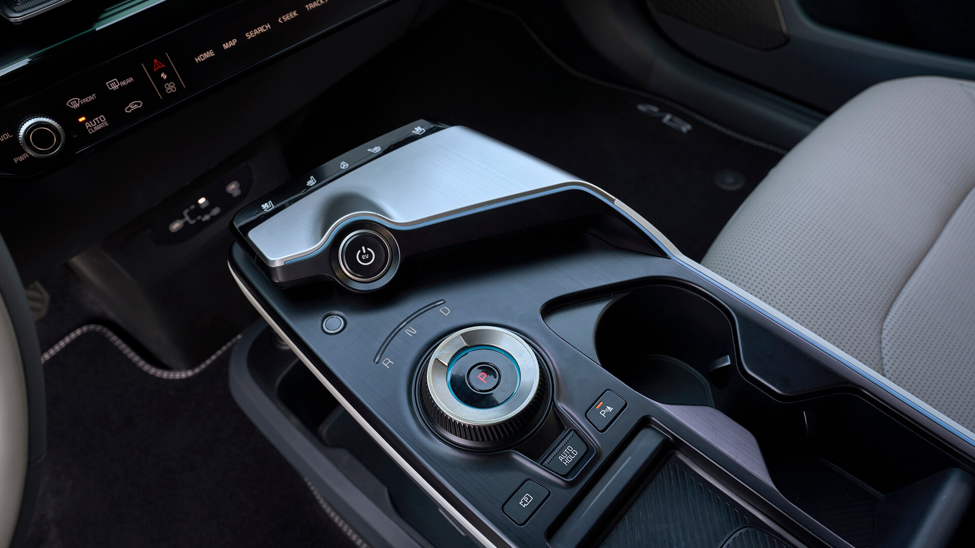 Przeprojektowano także nieco panel centralny, gdzie lakierowany plastik ustąpił miejsca bardziej ekskluzywnemu wykończeniu imitującemu szczotkowaną stal. W tym miejscu pojawił się także czytnik linii papilarnych – odciskiem palca można aktywować swój profil Kia Connect oraz uruchomić samochód bez użycia kluczyka. Jednocześnie poprawiono ładowarkę indukcyjną, która teraz ma moc 15 W.